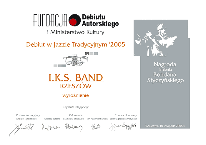 Protokół juryII Konkursu im. Bogdana Styczyńskiego za najlepszy debiut w jazzie tradycyjnym 2005.